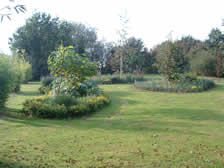 This bed is encirled by fuchsia