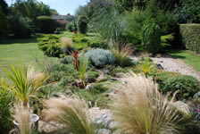 You then move out to a less formal part of the garden, the pond and wildlife area, with it's dramatic changes throughout the seasons. Here you can sit in the shade gazing over a large expanse of water stocked with Rudd and Mirror Carp, or stroll through a winding path next to the waters edge. Native trees, grasses and wildflowers surround this tranquil haven.