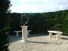 Once the hedges had filled out we felt the centre required a focal point. We looked around for something in keeping with the design and an armilliary sundial was ideal.