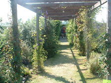 The 40' pergola leading to the entrance of the maze was originally planted with honeysuckle and various clematis.