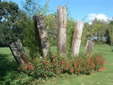 The fans, created from railway sleepers, were designed to make a division between the croquet lawn and the specimen tree area. Each was made with three sleepers, using templated angles, set in concrete - never to move again!!!