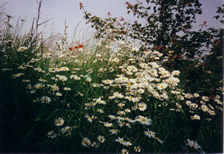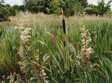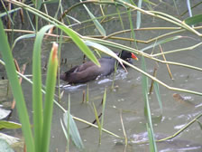 Wild ducks fly in on winter evenings, Mallards visit in early summer and a pair of Moorhen have bred regularly. Rudd and Mirror Carp were introduced in the early '90's. Both types of fish have increased in numbers,with now hundreds of Rudd and some very large Carp, this is despite visits from the local Heron. Marginal Reeds are cut down each winter to allow for the spring show of Kingcups, Flag Iris, Meadow Sweet and Purple Loosestrife. Several varieties of oxygenating plants become a haven for many water loving insects.